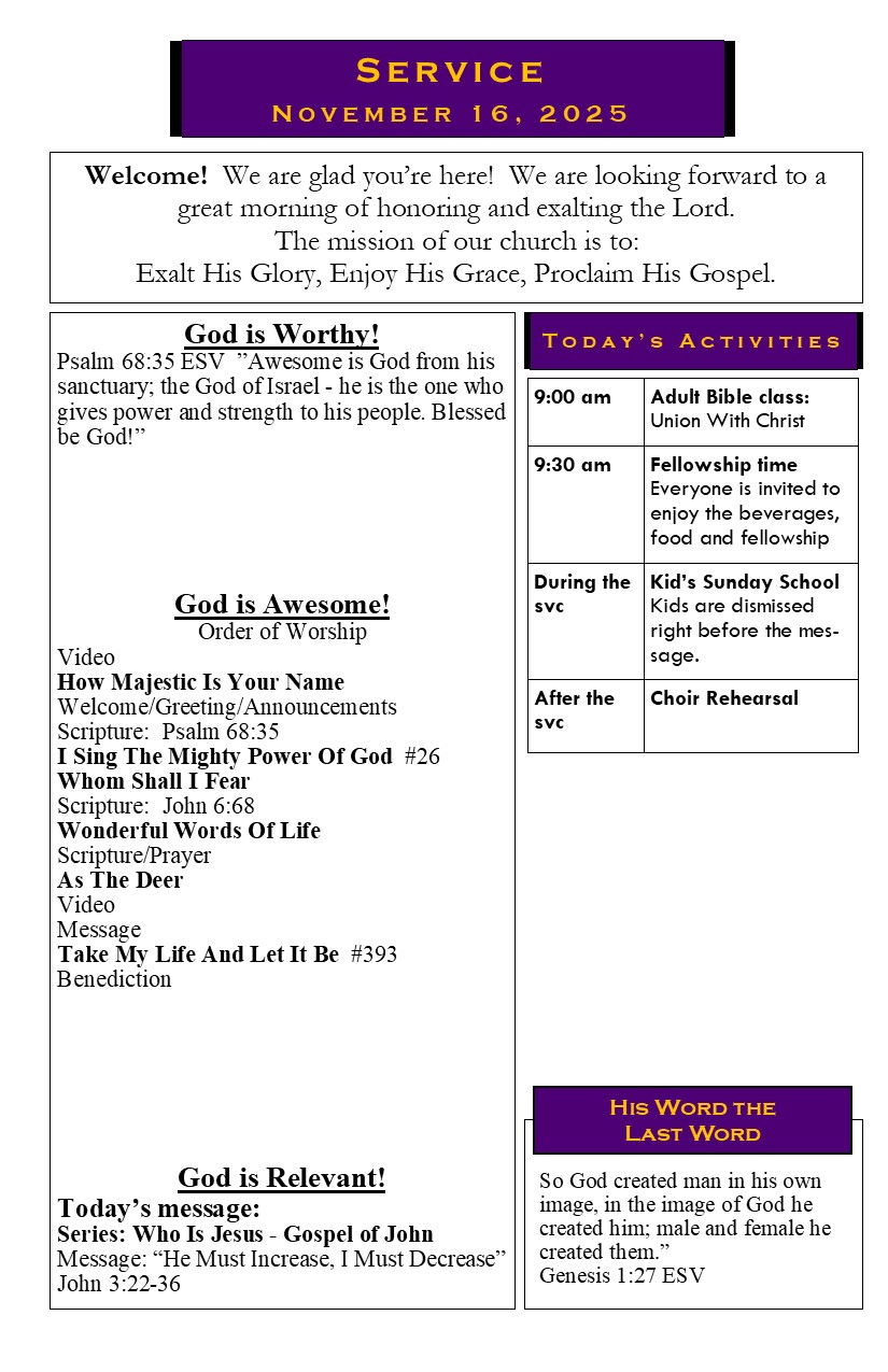 He leaped for joy in his mother's womb upon her hearing the greeting of Mary, carrying the Christ child. Now, three decades later, after baptizing Him in the Jordan River, John declares that any attention or fame he may have gotten in recent years must now be given to Jesus. John's ministry and life proclaimed the coming of the Messiah; now, the Messiah had come. Join us as Pastor Erik continues his series, "Who is Jesus?", as he explains why John said, "He must increase; I must decrease," and why every Christian must say the same.