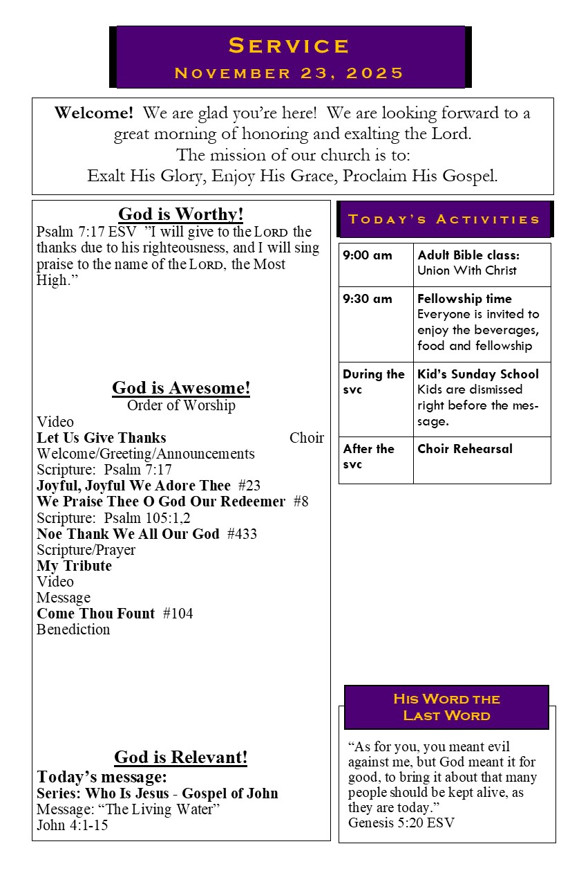 Imagine being lost in a scorching desert with no apparent way out and no rescue on the way. Your body is weak and your tongue sticks to the roof of your mouth, dry as an old bone. You couldn't be more thirsty. But then, out of nowhere, is a pool of clean, clear, and cool fresh water. It's no mirage; it's real. How unimaginably refreshing that would taste, filling your entire being not only with needed water but with joy unspeakable. Join us as Pastor Erik relates the story of when Jesus tells a Samaritan woman how she could not only satisfy her physical thirst but satisfy a much more important thirst with a "water" that will last forever.