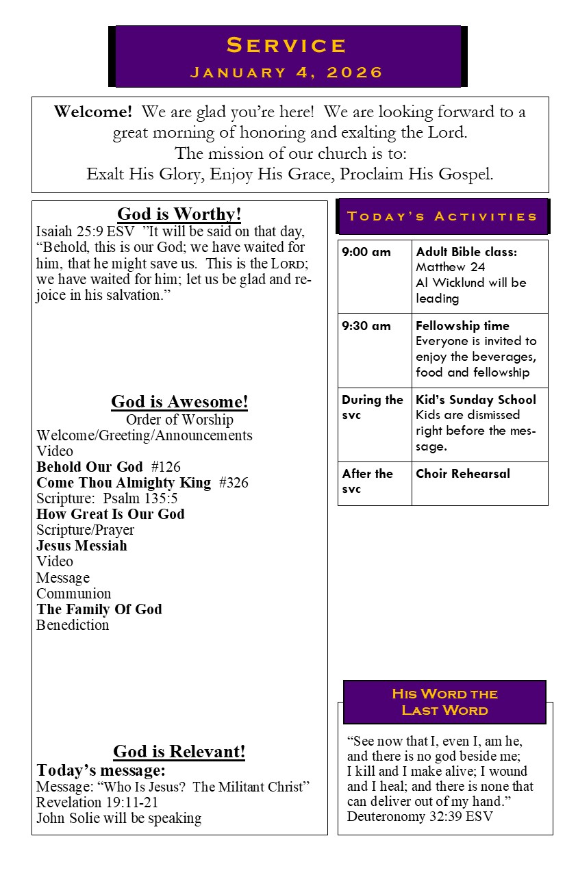 Jesus has many names throughout Scripture. Wonderful Counselor, Mighty God, Good Shepherd, Messiah, King of Kings - He's called these and multitudes of others. One name and image of Christ that we hear very seldom is that of the "Militant" Christ. Join us as Pastor John explores this aspect of our Redeemer by studying the scriptures of Revelation 19 (and others).