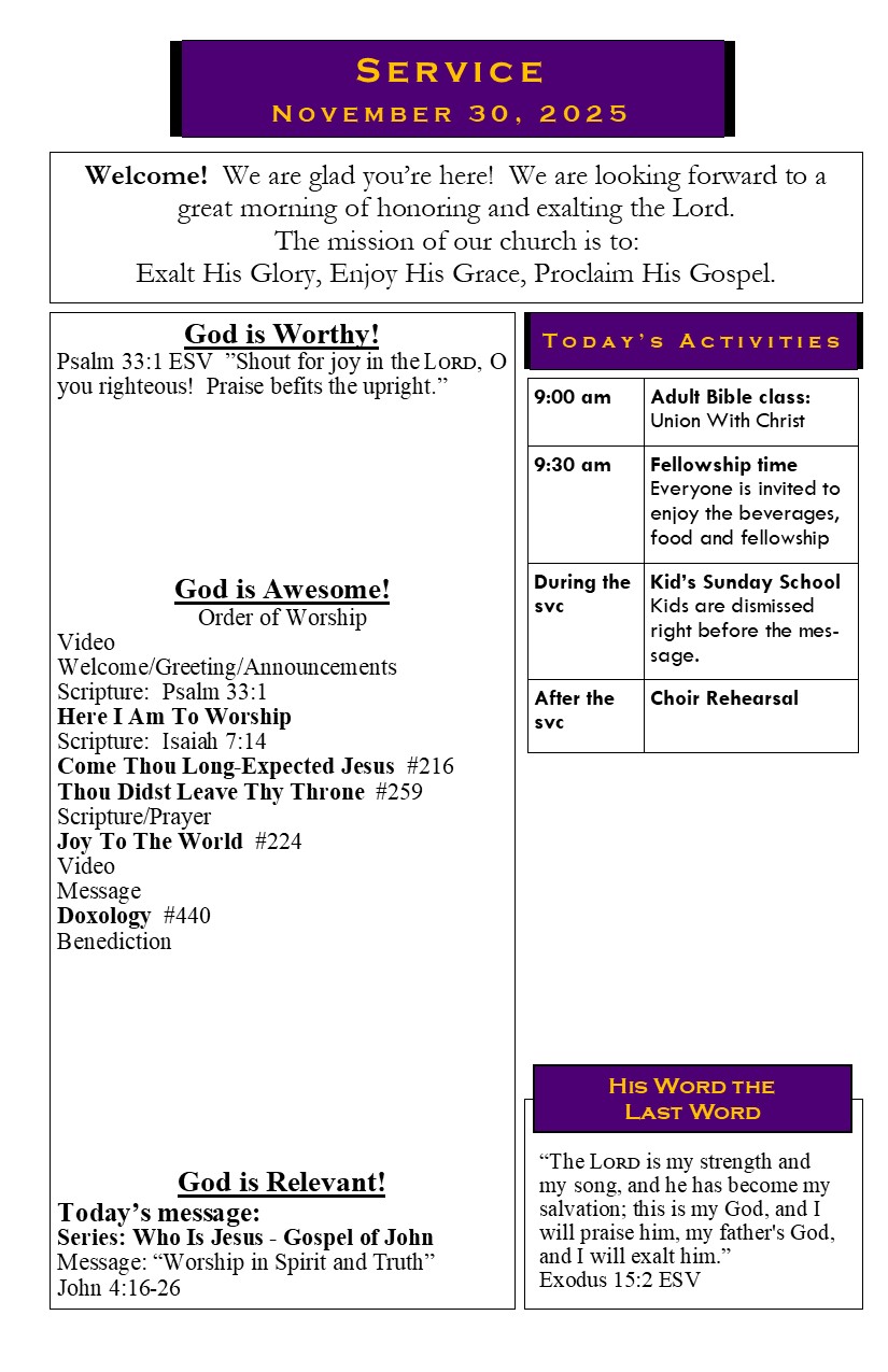 The Samaritan woman at the well was just told by Jesus about a water which will enable those who drink of it to thirst no more. She was intrigued. Join us as Pastor Erik continues his series in the Gospel of John, where Jesus continues to amaze and bewilder this woman, explaining to her the meaning of true worship and ending in verse 26 of chapter 4 with a declaration so stunning that it staggers the imagination.